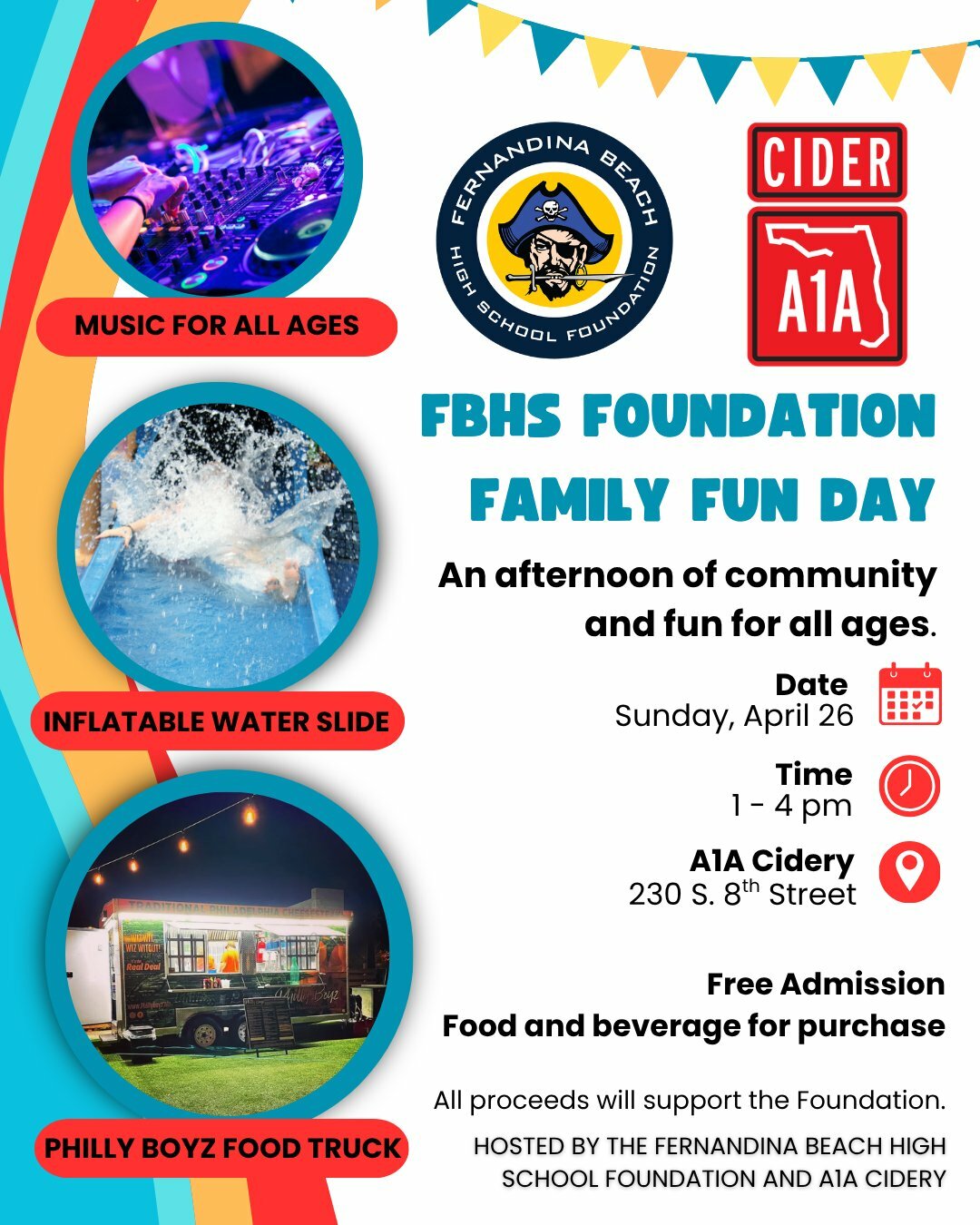 The Fernandina Beach High School (FBHS) Foundation is internet hosting a free, family-friendly Fun Day on Sunday, April 26, from 1–4 p.m. on the A1A Cidery at 230 S eighth St. in Fernandina Beach.