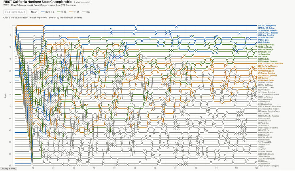 I believed the identical factor could be enjoyable for qualifying positions in quals matches. This device will present you ways every group moved up and down via the qualifying rankings over the course of a contest.