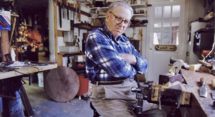 I made the {photograph} of Cecil shared this week after just a few visits and conversations relating to a tilt high desk he had constructed by hand with instruments he’d made. He wanted a photograph of the desk and an writer photograph. Uncle Ralph Spinney, famous Southport electrician and outdoorsman, knew Cecil nicely and figured we’d get alongside OK. Cecil wasn’t wild concerning the thought of a “portrait” however gave me a quick alternative at his house store for just a few pictures. I additionally did get the decision to {photograph} his desk as soon as I had handed the congeniality check.