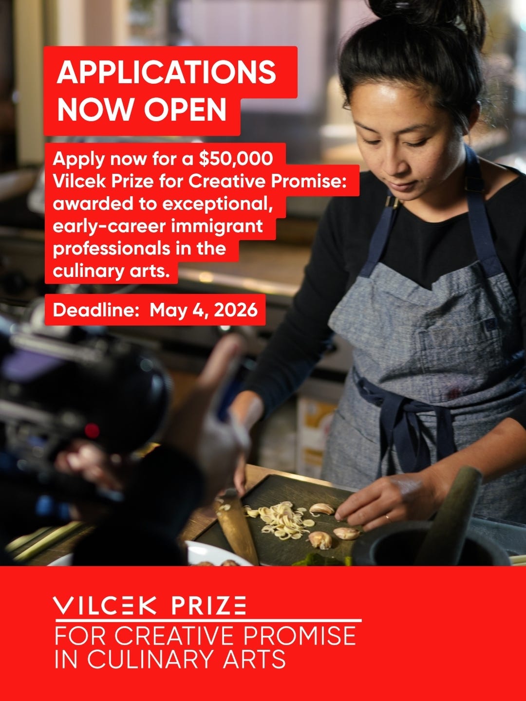 P.S.S. The Vilcek Foundation shall be awarding six Vilcek Prizes for Creative Promise in Culinary Arts: Food & Beverage and Media & Storytelling. In every class, three younger, immigrant culinary professionals who show excellent early achievement of their discipline will obtain particular person unrestricted money awards of $50,000. Applications are open by May 4, 2026. If that is YOU, check out all of the info here and APPLY!!