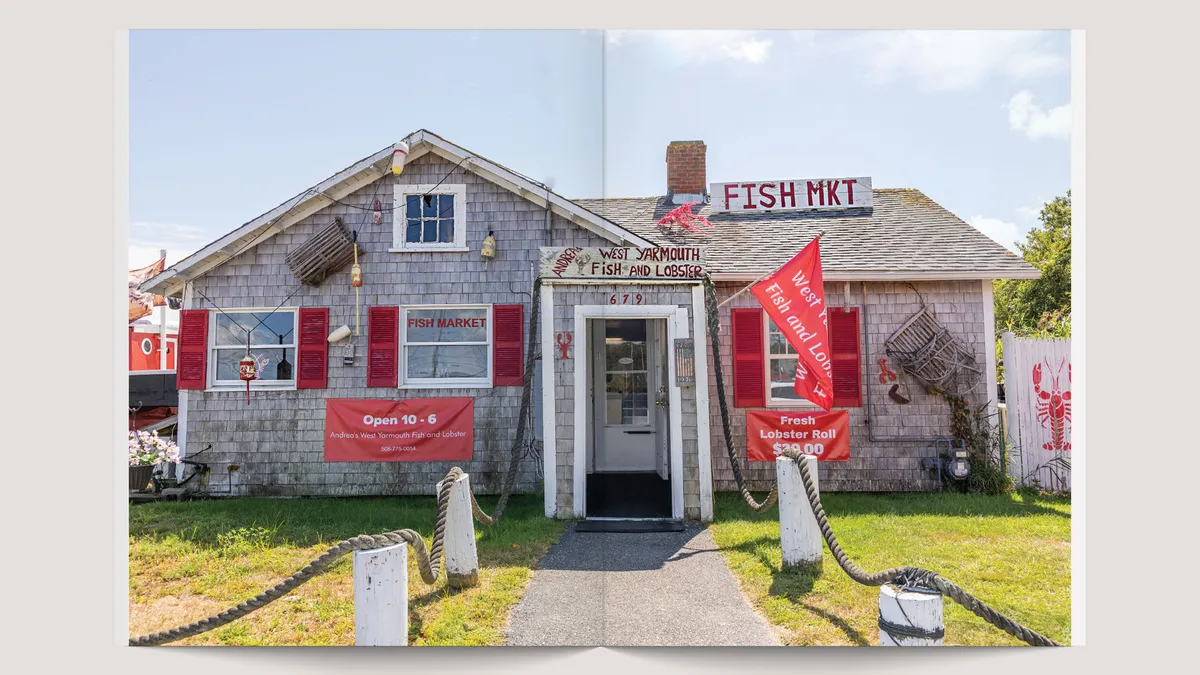 The book’s website does not appear to list specific places on Cape Cod or the Islands for the photos, but images from the book show Sankaty Head lighthouse on Nantucket, Andrea’s West Yarmouth Fish and Lobster shack, and pages labeled “Nan-freakin-tucket” and “lobster rolls and clam chowdah.”