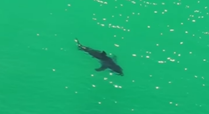 The 7-to-8-foot long shark swam in the water near his friend, Matt, who was foiling in the waves at 9:20 a.m. Luckily, the shark wasn’t close enough to Matt to concern Steiner, so he followed the sea creature with his drone, capturing video until his battery ran low.