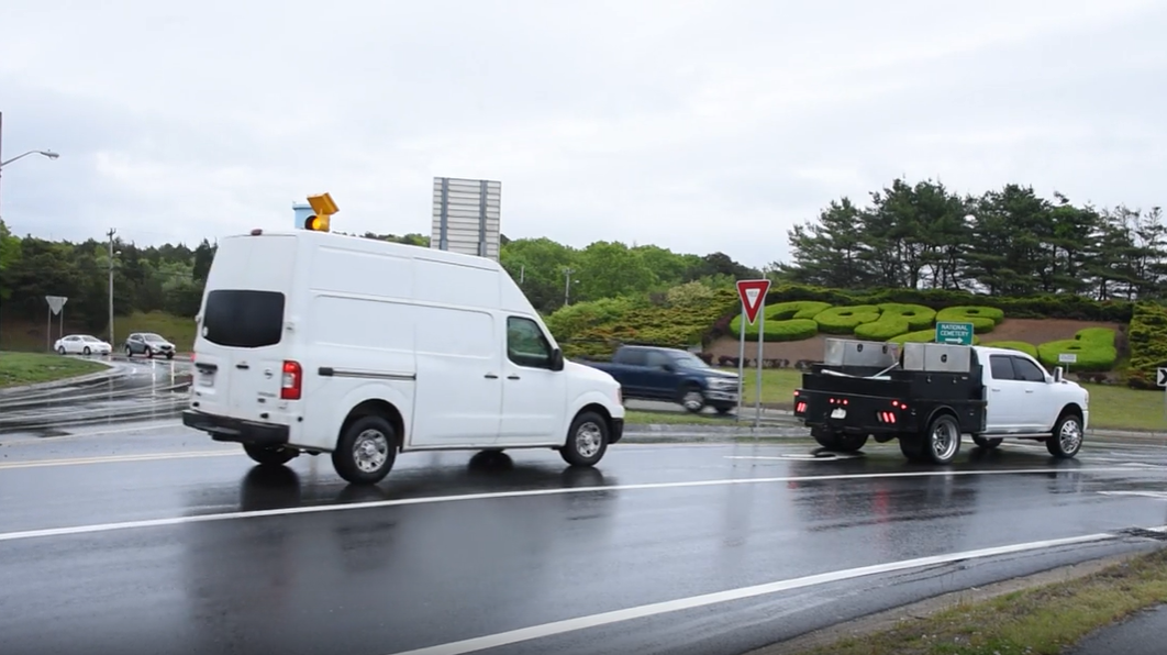 Rain or shine it is site visitors time as morning commuters come to a cease on the base of the Bourne Bridge earlier than navigating the redesigned Bourne Rotary.