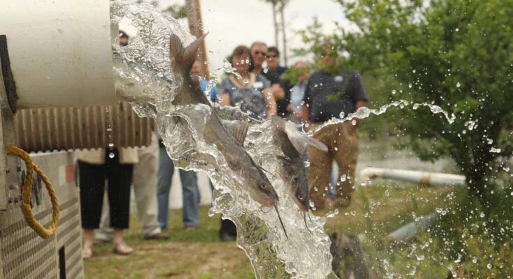 The AGFC shares tons of of hundreds of kilos of catchable-sized channel catfish all through Arkansas every year for immediate angling enjoyment. AGFC picture.