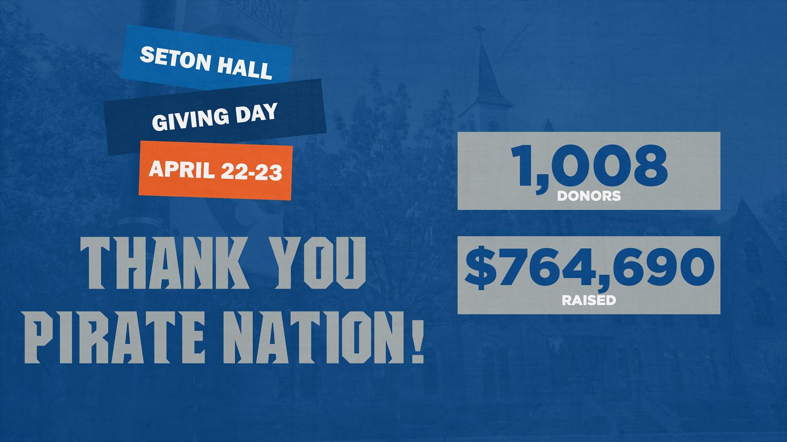 “On behalf of Seton Hall’s student-athletes, coaches and administrators, thank you so much to each and every person in Pirate Nation who contributed to this record-setting campaign,” stated Bryan Felt, Seton Hall’s Director of Athletics and Recreation. “Our success is a collective, effort, and the support that we received will go a long way towards ensuring that we continue to recruit and retain student-athletes, provide them a first-class experience while representing our great University and compete for conference and national championships. Coming off this historic Giving Day with our supportive fanbase behind us, I’m excited about what the future holds for Seton Hall Athletics.”