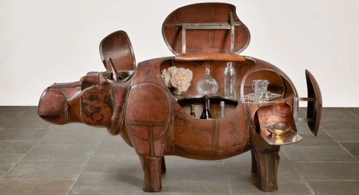 The market in mid-century French design has bloomed over the primary quarter of the twenty first century. According to Elie Massaoutis, head of design at Phillips Paris, ‘Now it is sought after even by younger generations.’ What collectors search for, he says, is ‘authenticity’ – they need attribute items by notable names, which ‘embrace the idea of the mid century’, and pays extra for a bit that has unique paint or patina than one in excellent situation. Particularly wanted are distinctive or bespoke items by Prouvé, Perriand or Royère. ‘The market has evolved very quickly recently,’ Massaoutis provides. Three or 4 years in the past, Royère’s costs had been uniformly excessive: a ‘Polar Bear’ couch and pair of armchairs, c. 1952, from the Adam Lindemann assortment, offered for a file $3.4m in March 2023 at Christie’s in New York (estimate $1m–$1.5m); right now, it’s his uncommon straw marquetry items or extra uncommon ‘Liane’ lights that draw collector curiosity. For Florent Jeanniard, joint worldwide head of design at Sotheby’s, probably the most thrilling growth available in the market during the last 20 years has been the astonishing rise in costs for the artist-designers Diego Giacometti and Les Lalanne. He cites the $31.4m – 3 times the highest estimate – paid at Sotheby’s New York in December 2025 for François-Xavier Lalanne’s charmingly surreal copper Hippopotamus Bar (1976) – a file for any work of design at public sale. Flavien Gaillard, Christie’s Head of Design, thinks {that a} collector’s ‘aura’ can have ‘a strong influence on the final price’. He cites the Hubert de Givenchy assortment sale in Paris in 2022, the place furnishings by Diego Giacometti, commissioned immediately from the artist, was hotly contested, together with a singular bronze console desk with a chicken and a cup from 1976 that offered for €1.7m (estimate €400,000–€600,000).