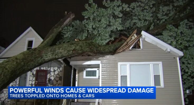 A possible century-old tree took out a South Side home, and highly effective winds induced a whole lot of harm as storms rolled via the world.