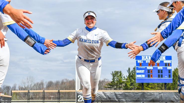 Lead picture: Sofia Santana ’26 along with her Hamilton softball teammates. Photo: Josh McKee