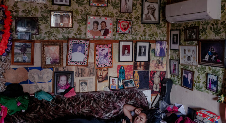 ©Tatsiana Chypsanava, Ruiha Te Tana (12) relaxes at her grandfather’s residence in Ruatoki, New Zealand. Built by an ancestor in 1916, the homestead serves as a dwelling archive of Tūhoe historical past. The wall of images visually represents Te Tana’s whakapapa, or family tree, a cornerstone of Māori tradition. Whakapapa connects people to their ancestors, land, and tribal id, offering a way of belonging and continuity, in Ruatoki, New Zealand, on January 26, 2022.
