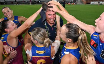 Craig Starcevich celebrates along with his Brisbane gamers after their win over Carlton within the 2025 preliminary remaining. Picture: AFL…